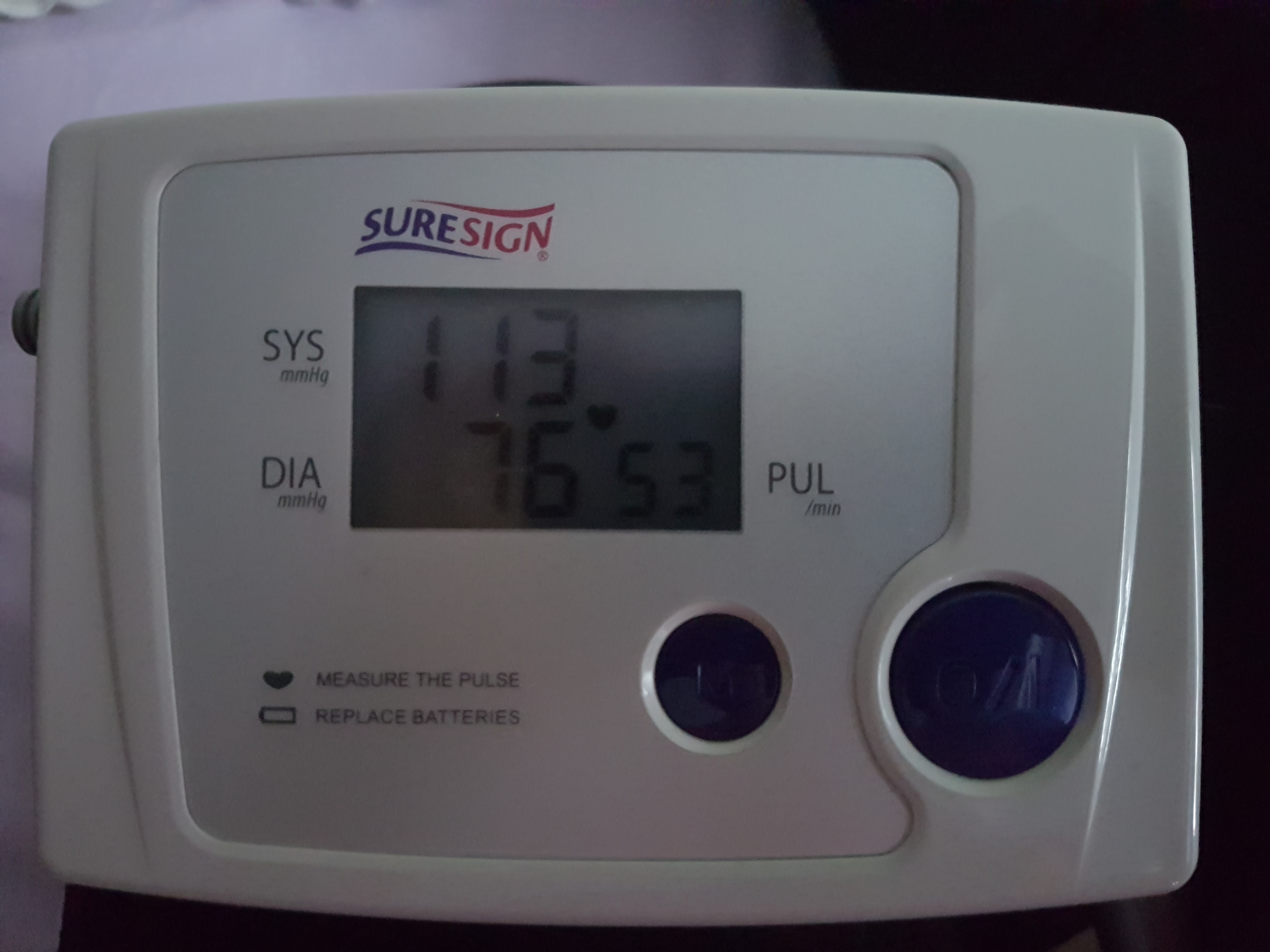 Just about 2 weeks after starting my blood pressure regime, it is normal again. Below the high normal range. Within the nice healthy normal range. And here is the picture from just now.